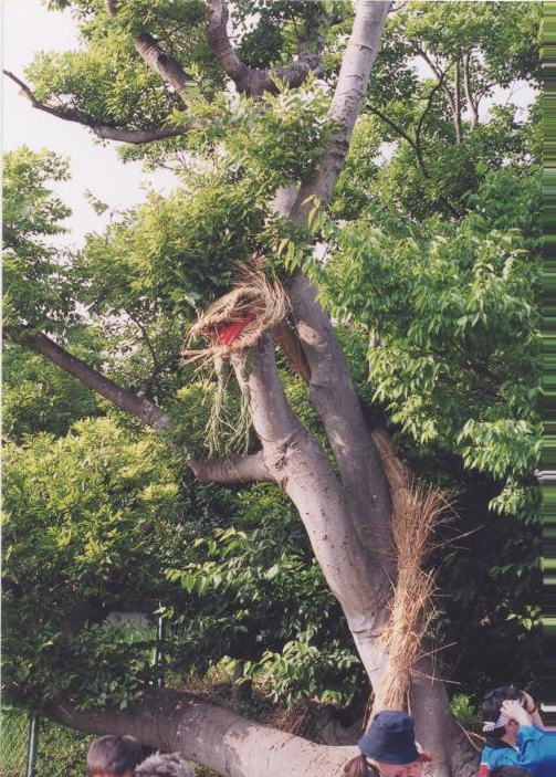 場所:上品寺町の南端にある集会所の横の榎の木。以前は上品寺町の北端に沼があり、そこにニレの木とノガミ塚があった。