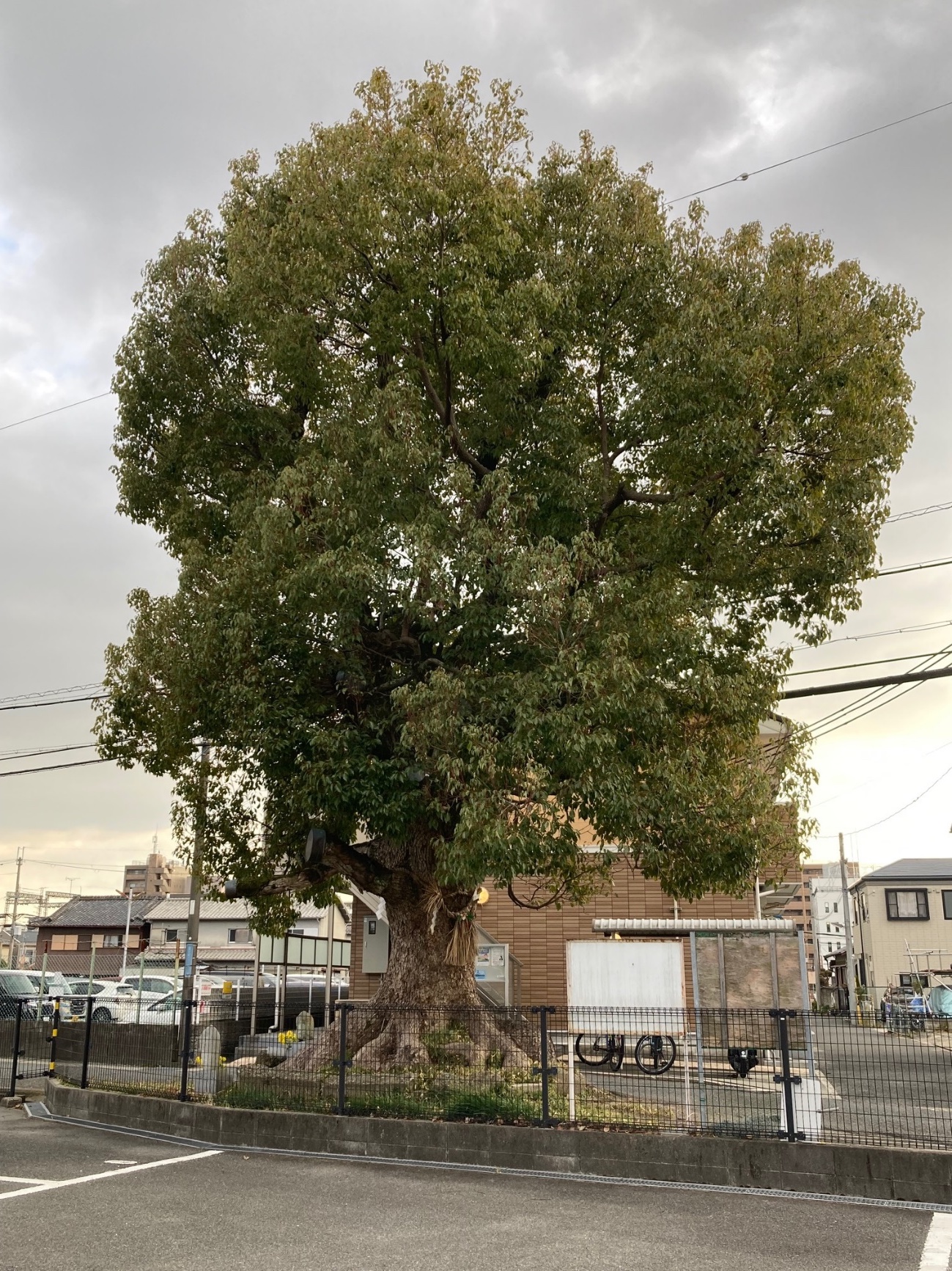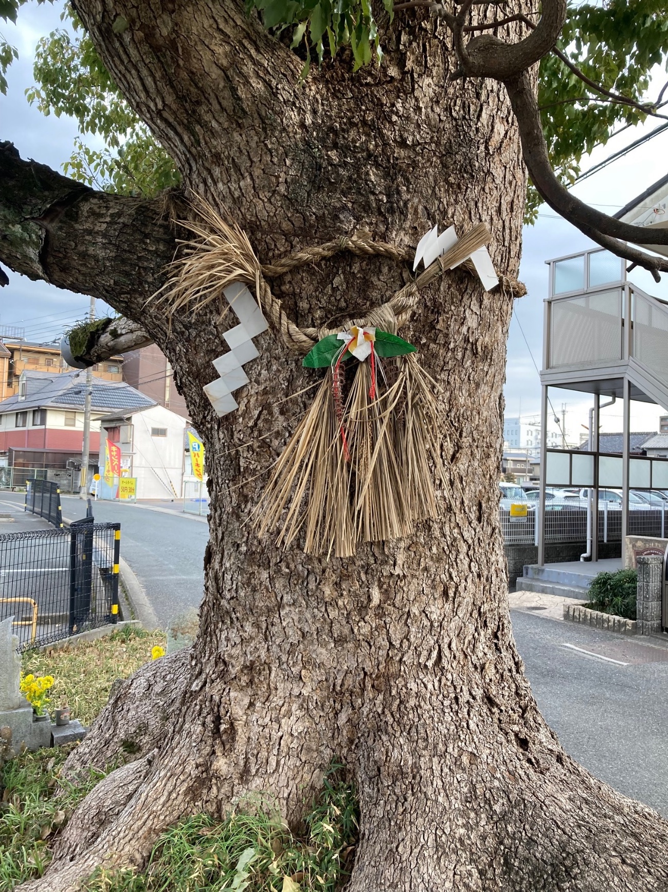場所:近鉄得新大宮駅から北へ、二条通に楠木がある。注連縄がかかっている。